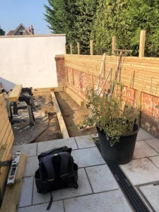 One of the key challenges we encountered during this project was the uneven ground across the garden, which required precise levelling before any installation could begin. This was essential to ensure the patio would be stable, safe, and long-lasting. Drainage was another important consideration to prevent water from pooling during heavy rain, we discreetly installed a drainage system beneath the patio. Finally, achieving harmony between the different materials was a subtle but crucial task. We carefully selected stone, timber, and planter finishes that complemented each other in tone and texture, creating a cohesive, balanced look that tied the whole design together.