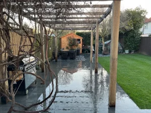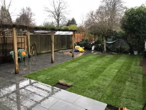 Ready to transform your garden with slate paving, fresh turf, and a bespoke pergola?