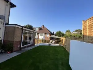 The garden at this Bletchingley property featured a pronounced slope that made the space difficult to use and visually disjointed. The uneven levels posed a challenge not only for accessibility but also for creating a cohesive and functional layout.